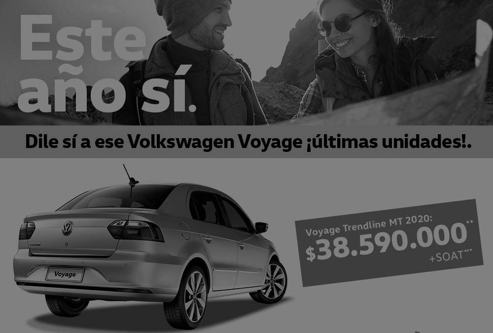 Imágenes de referencia. Algunos diseños u accesorios pueden ser adquiridos por un valor adicional. **El precio anunciado aplica para Volkswagen voyage trendline MT modelo 2020 para 6 unidades disponibles en inventario. ***El valor del SOAT no es redimible en dinero en efectivo y aplica para vehículos matriculados hasta el 29/02/20. No redimible en dinero en efectivo. Promocion valida hasta el 29/02/20 o hasta agotar inventario.
