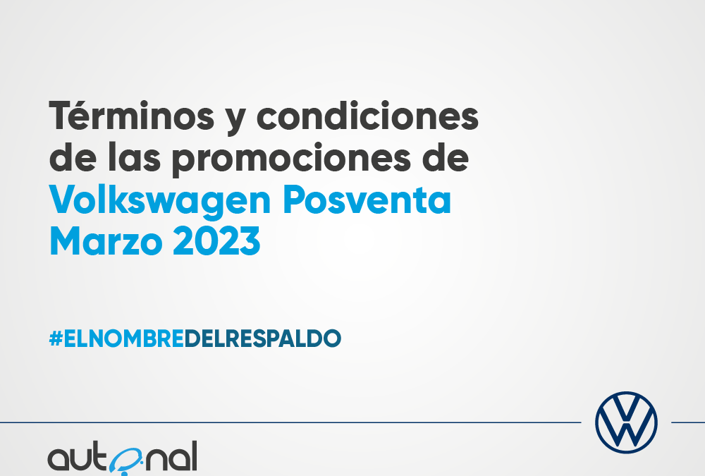 Programa exclusivo para vehiculos Volkswagen que no tengan historial en Autonal S.A.S.,y/o vendidos por otros concesionarios de la marca Volkswagen, descuento 50% en mano de obra mecanica y 15% de descuento en repuestos, aplica para los vehiculos que ingresen al taller de Volkswagen Autonal S.A.S., unicamente. No acumulable con otras promociones, no es trasnsferible a otro vehiculo, no aplica para trabajos de colision, alineacion y balanceo, tapiceria, Airlife, rectificacion de discos, rectificacion de rines, no aplica para compra de llantas ni baterias. Vigencia de la promoción del 01 de Febrero de 2023 al 31 de Marzo de 2023